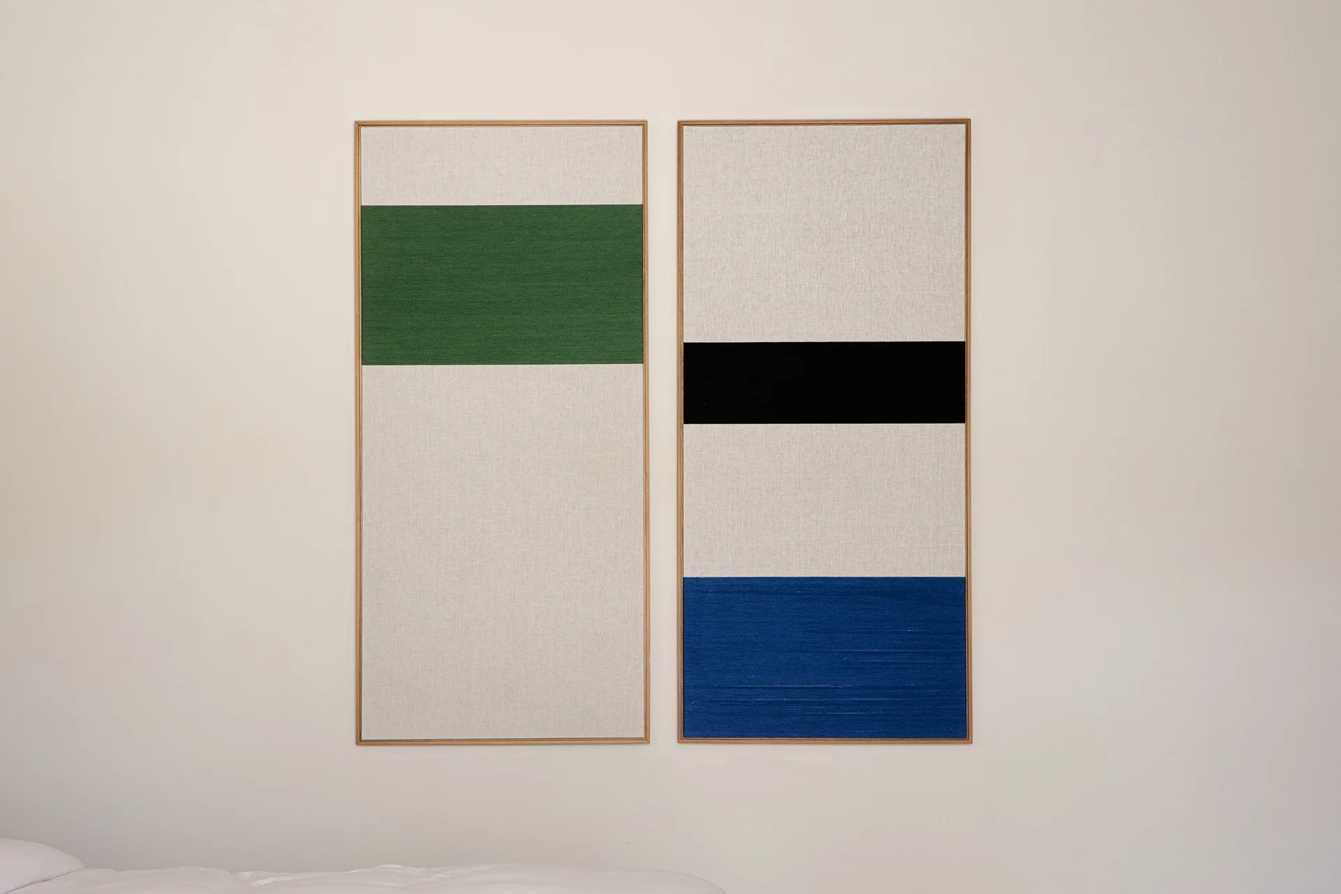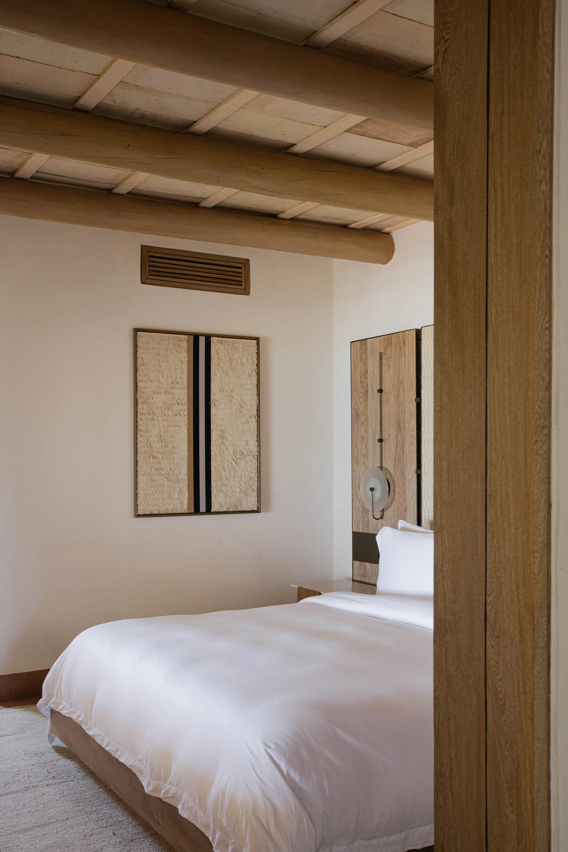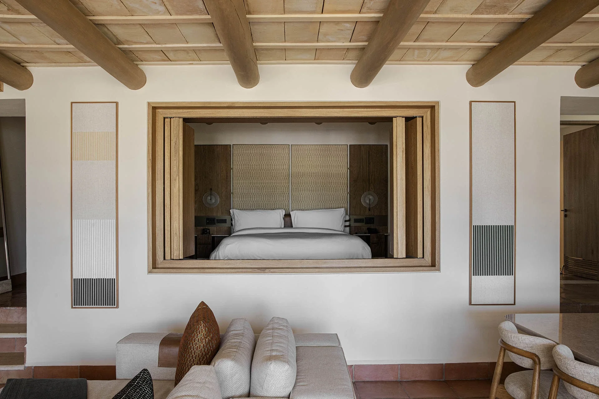 54 piezas murales en madera y acrílico mate diseñadas para dialogar con la arquitectura del resort, además de instalaciones textiles con tonos neutros que complementan la decoración de las áreas comunes.