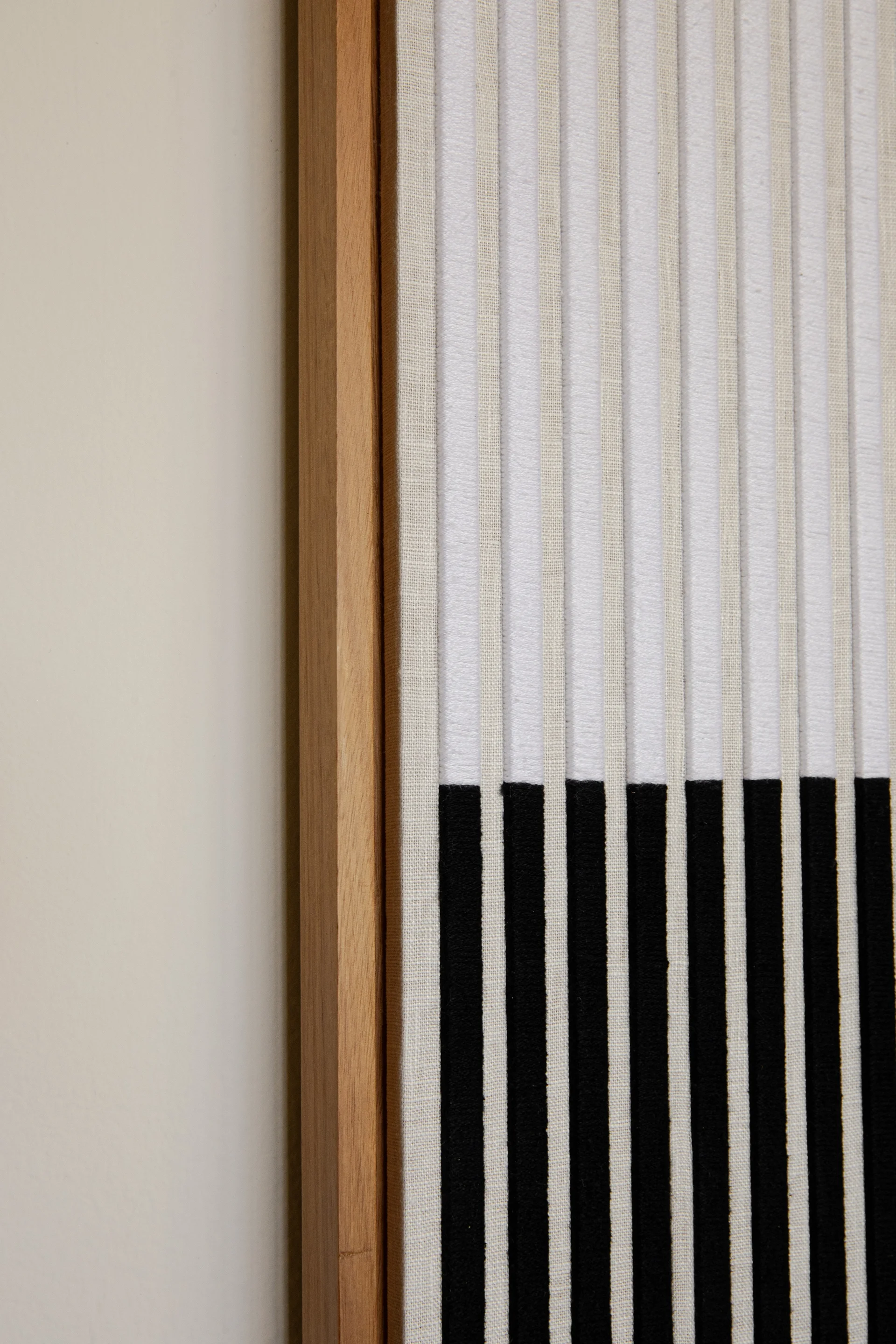 Madera tropical, lino, hilo de algodón y acrílico negro mate.